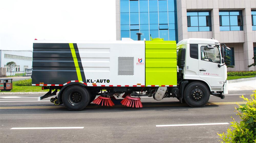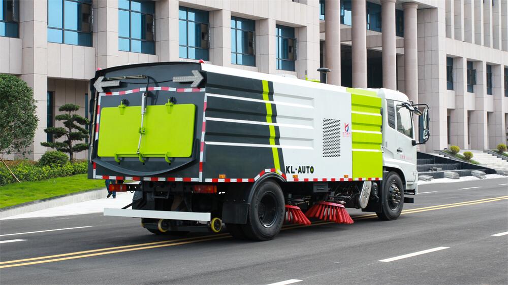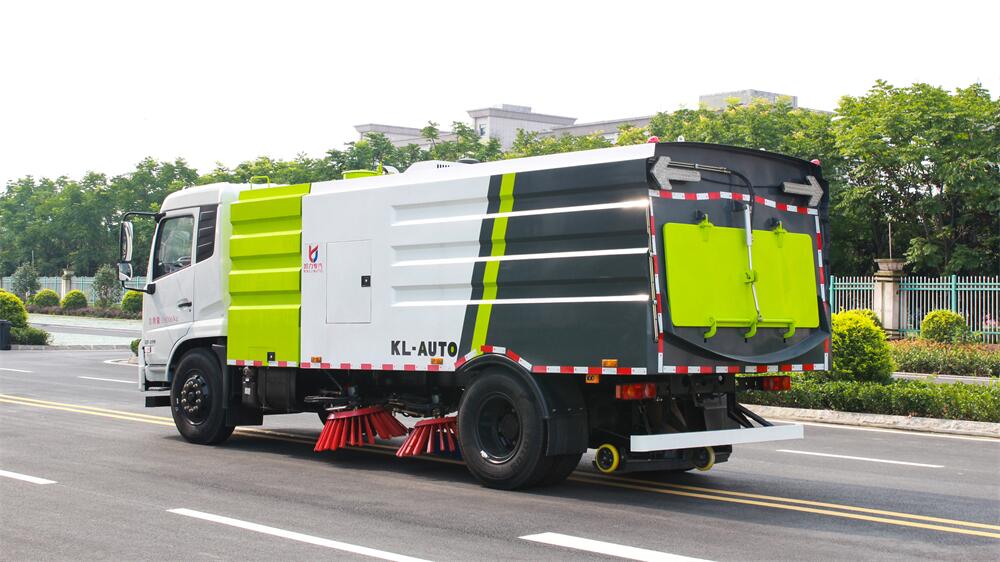 1.采用吸掃混合的方式收集垃圾,濕式除塵、電液,液壓傾翻卸料的作業(yè)方式對路面進(jìn)行清掃作業(yè)。